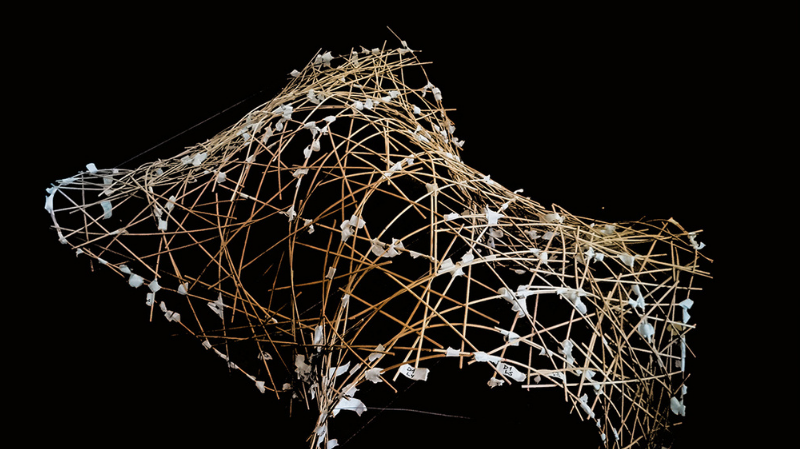 Según se explica en la memoria descriptiva del proyecto, esta hierba crece como maleza y captura cuarenta veces más CO2 que especies como el pino insigne. “A partir de una exploración híbrida mid-tech desarrollada a partir de prototipos físicos y procesos generativos digitales, se calcularon, demostraron y testearon las capacidades físicas y mecánicas del colihue; replanteando su escala y su uso meramente decorativo; como un material dúctil y versátil que permite ser estructura y envolvente, ser piel y huesos al mismo tiempo”.