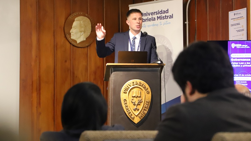 El seminario fue inaugurado por el Rector de la Universidad Gabriela Mistral, Dr. Sergio Mena, quien destacó que “vivimos en una era en que la seguridad no solo se experimenta en fronteras físicas, sino también en el espacio digital. El ciberespacio es una nueva dimensión de interacción global que plantea desafíos inéditos al derecho, la política pública y la ética. Requiere una gobernanza legítima, colaborativa y con visión de futuro”.