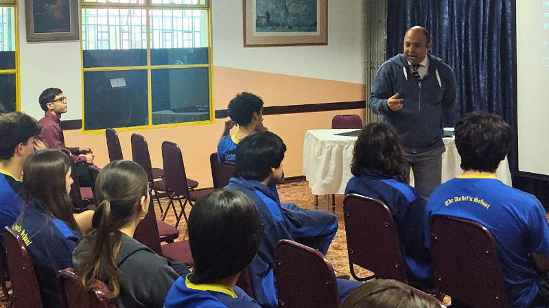 En el marco de la conmemoración del Día de la Filosofía, el Director de la Escuela de Humanidades de la Universidad Gabriela Mistral, Eduardo Hodge, dictó una clase magistral a estudiantes de 3º medio del colegio The Angel’s School, abordando uno de los temas más relevantes de la actualidad: “La relevancia de las humanidades en un mundo dominado por los datos y la inteligencia artificial”.