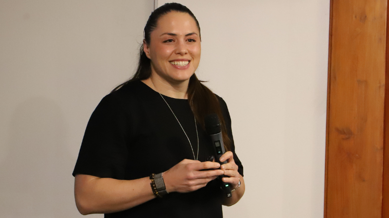 Como cierre de la jornada, la alumni UGM y destacada atleta nacional, Natalia Ducó, expuso detalles sobre la tesis que elaboró en conjunto con Ignacio Alvarado y que fue expuesta por primera vez en 2023.