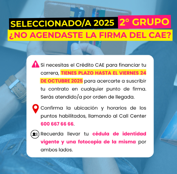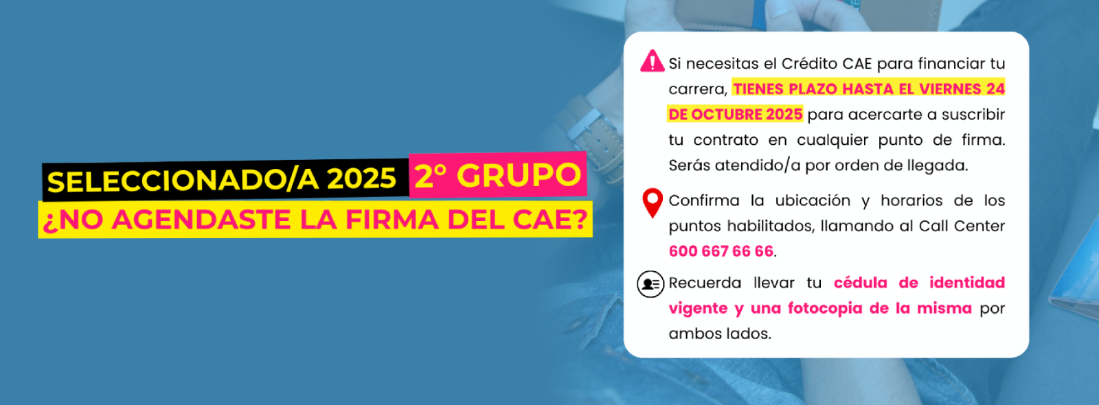 El Crédito con Garantía Estatal (CAE) es un beneficio es una alternativa de financiamiento para estudiantes que iniciarán o continuarán una carrera de pregrado en instituciones acreditadas que formen parte del Sistema de Créditos para Estudios Superiores y que cumplen los requisitos establecidos por ley para acceder a este ayuda del Estado.