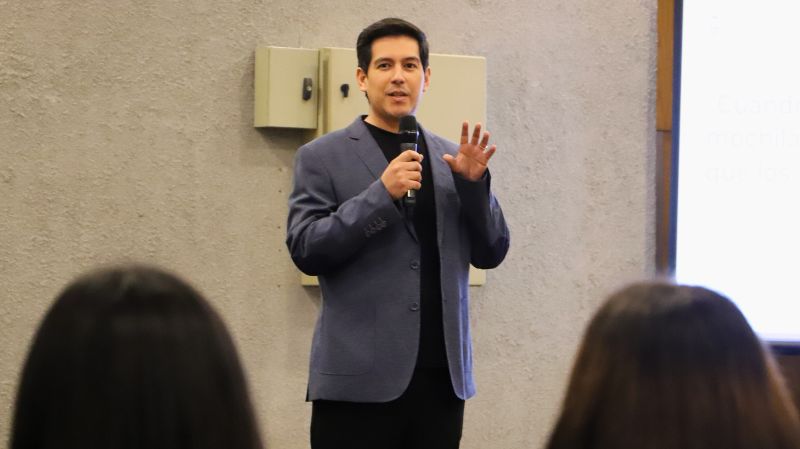 La universidad también formó parte del programa de charlas a cargo de dos de sus docentes. Uno de ellos fue Andrés Flores, coordinador académico del programa Psicología Advance, quien abordó el manejo del estrés académico, un tema clave para los estudiantes que están iniciando su vida universitaria.