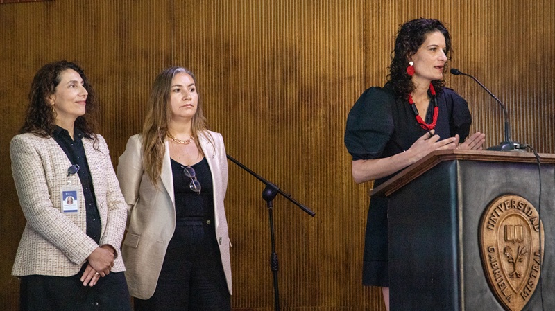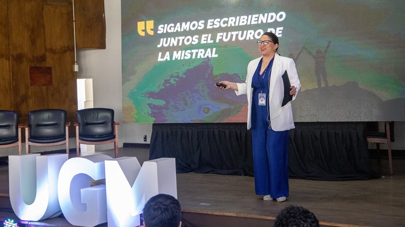 Posteriormente, el director de Desarrollo Estudiantil UGM Fernando Pavez Moreno moderó un panel de egresados conformado por la abogada y directora de empresas Carmen Román; la diseñadora Francisca Chacón y el ingeniero comercial, Roly Prieto Ovalle, quienes expusieron su legado mistralino.